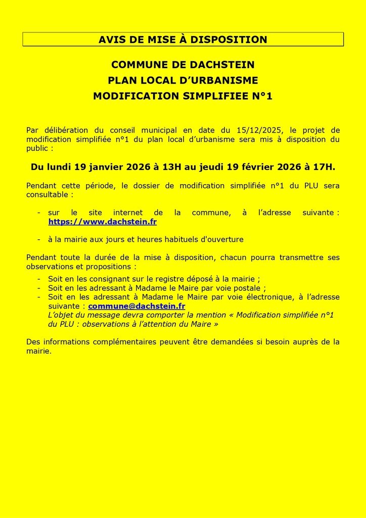 Modification simplifiée n°1 du PLU - Mise à disposition du public
